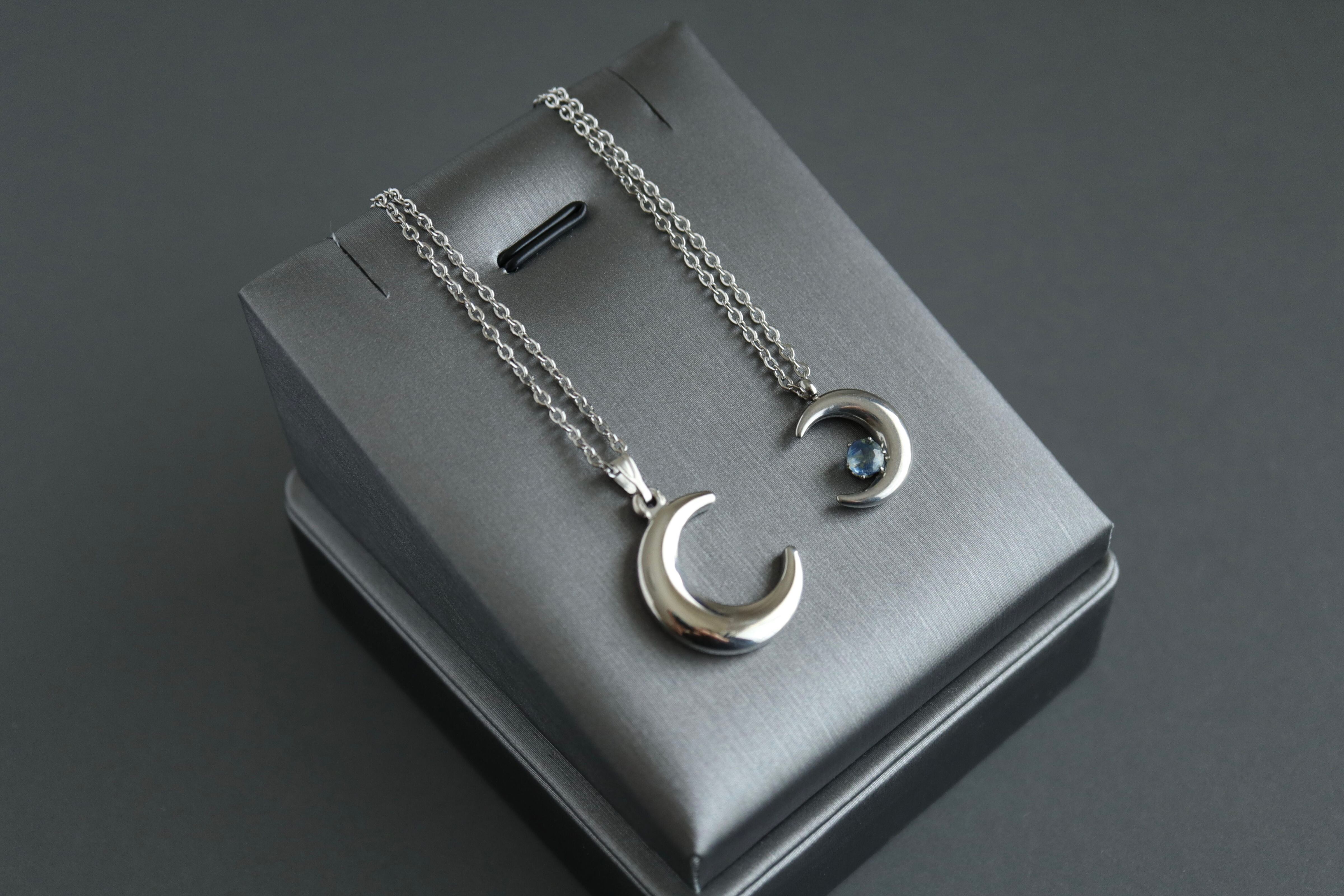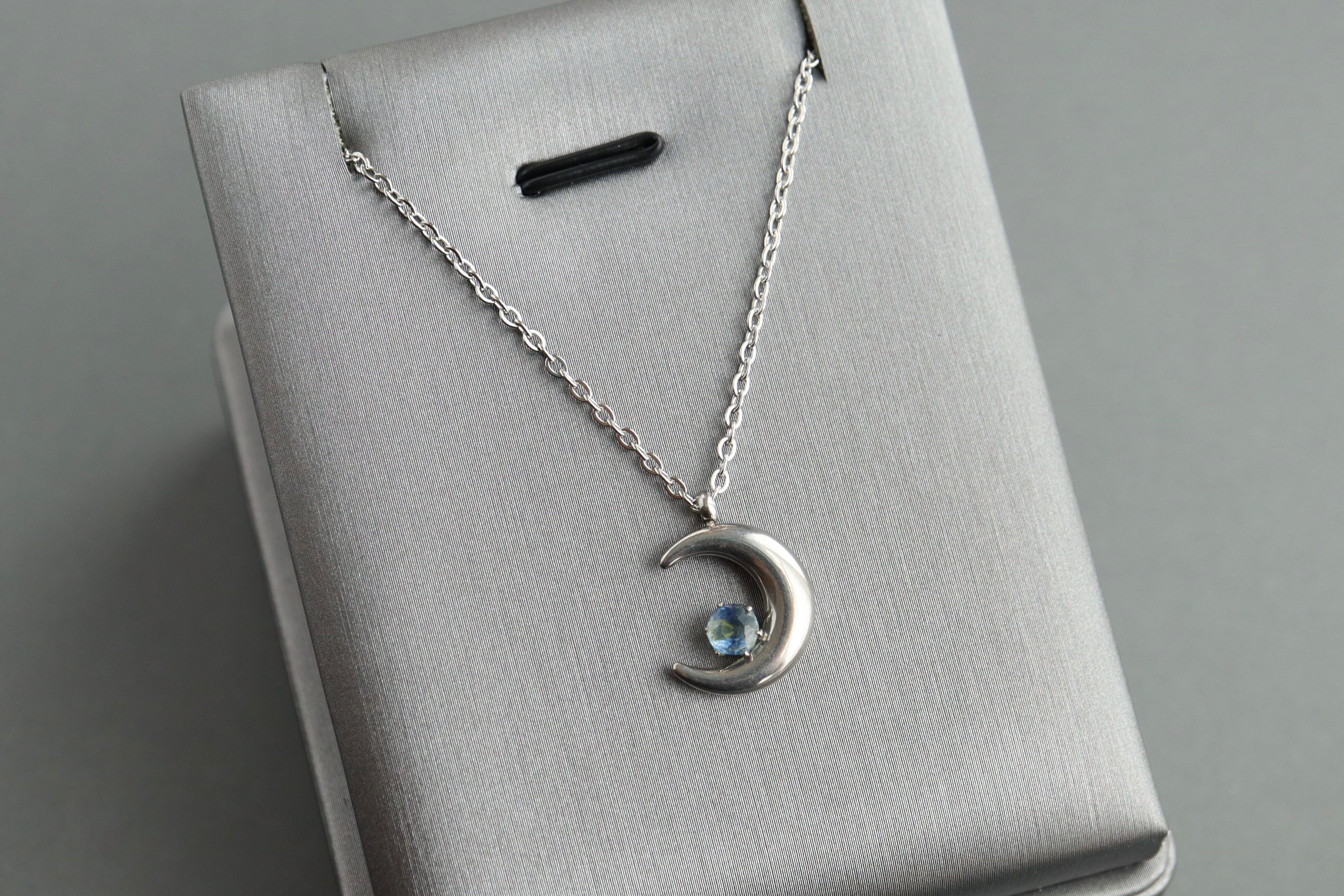 カイヤナイトのペアペンダント*天然石*三日月*サージカルステンレス【crescent moon】