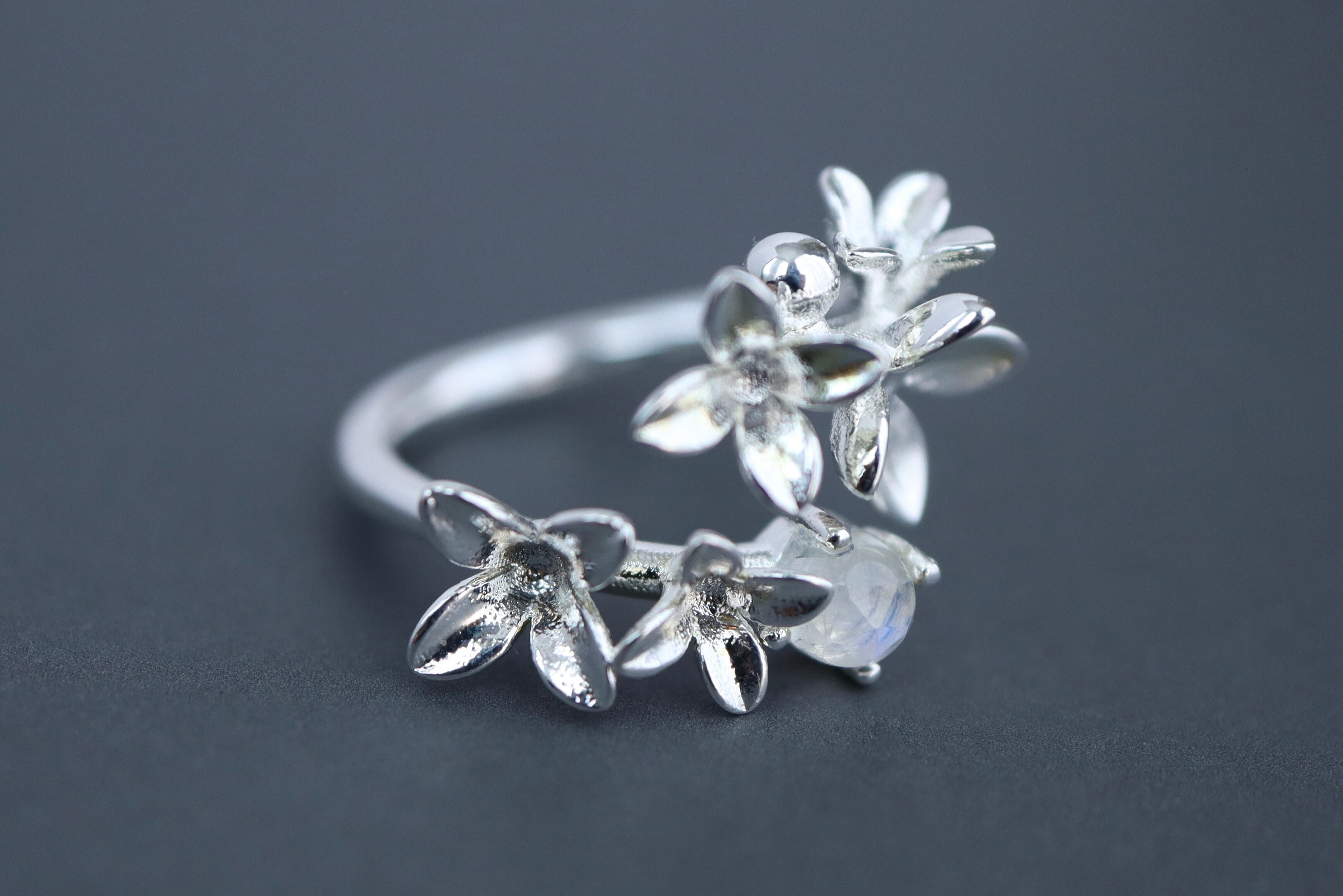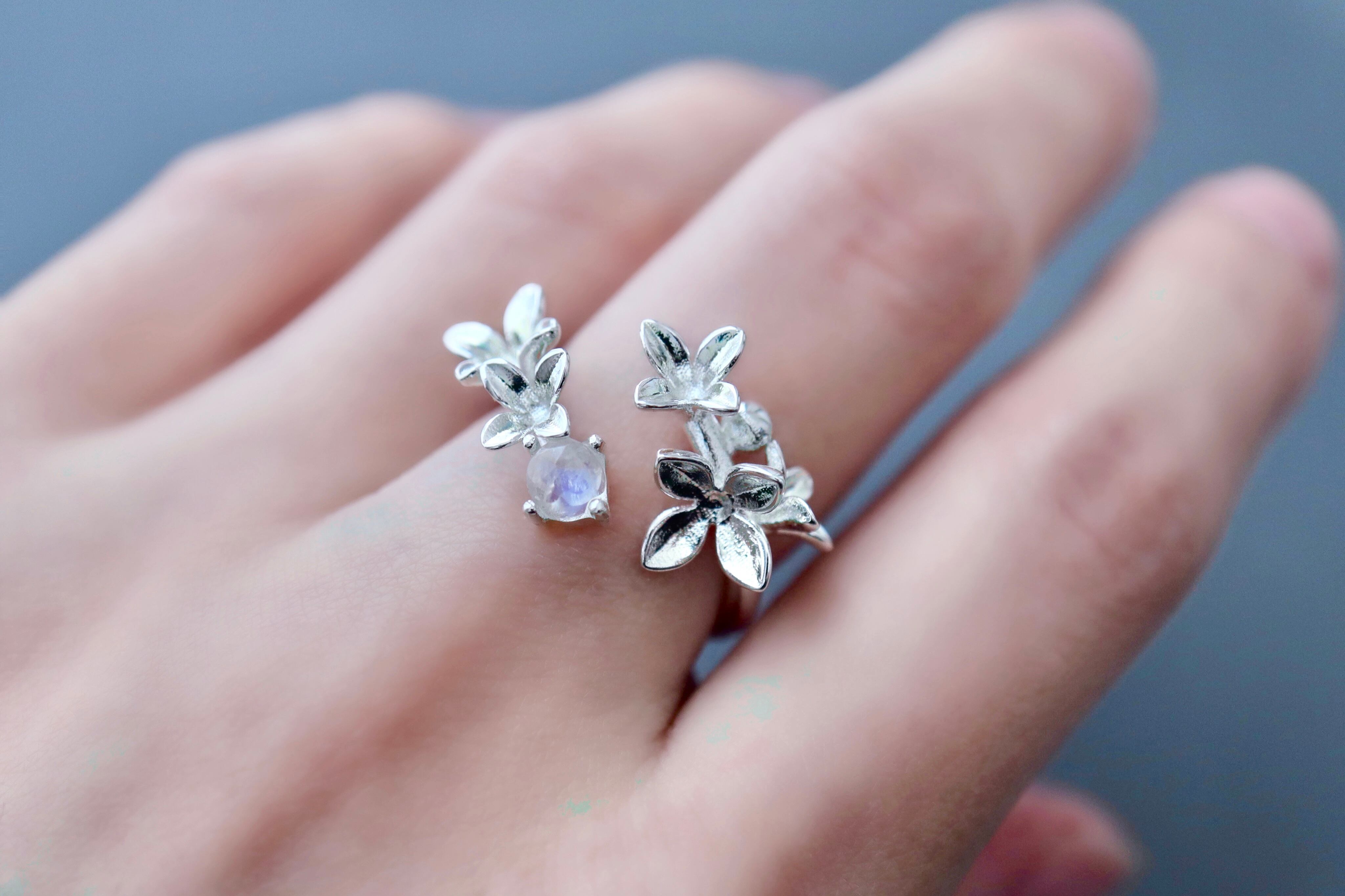 ムーンストーンと紫陽花のリング