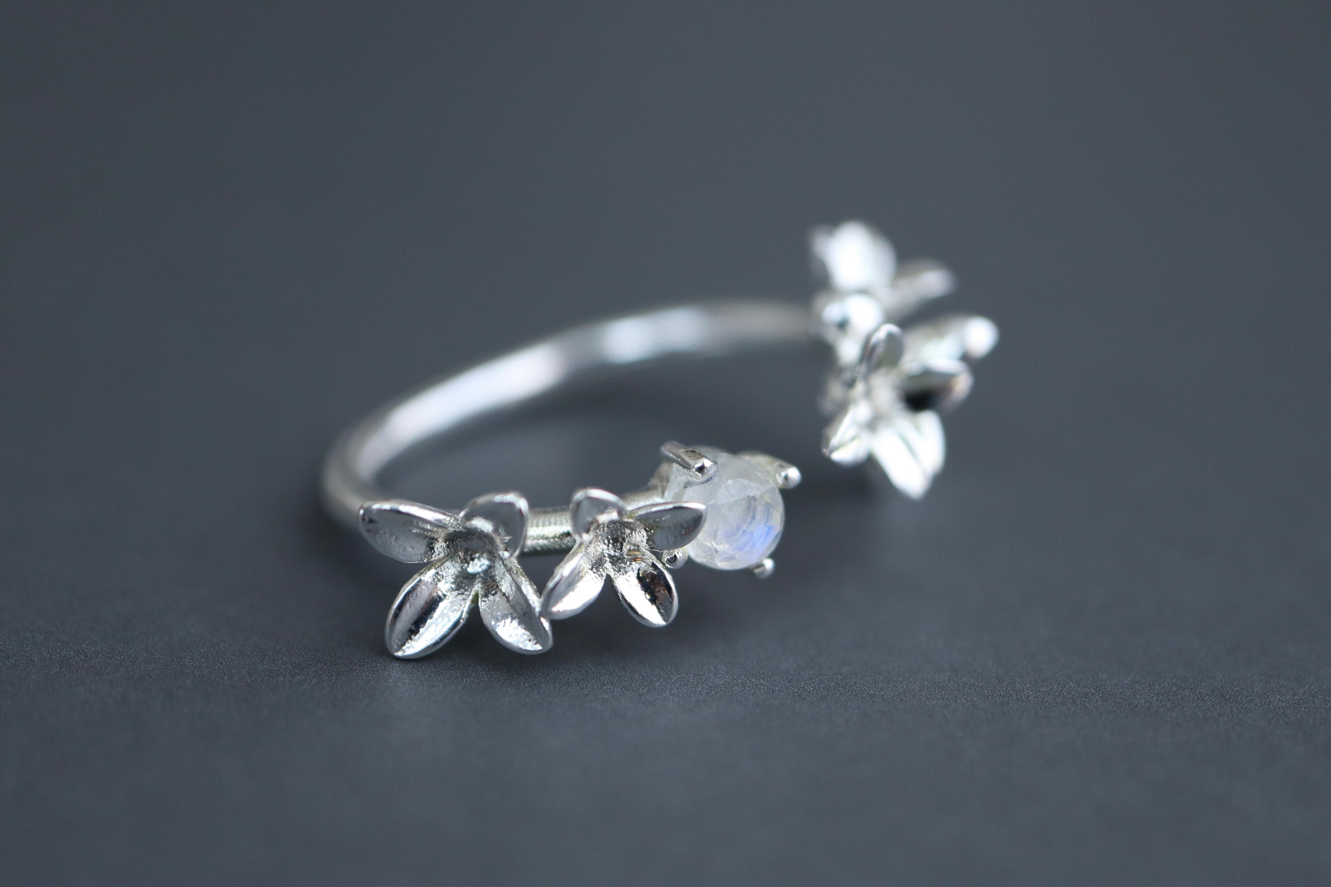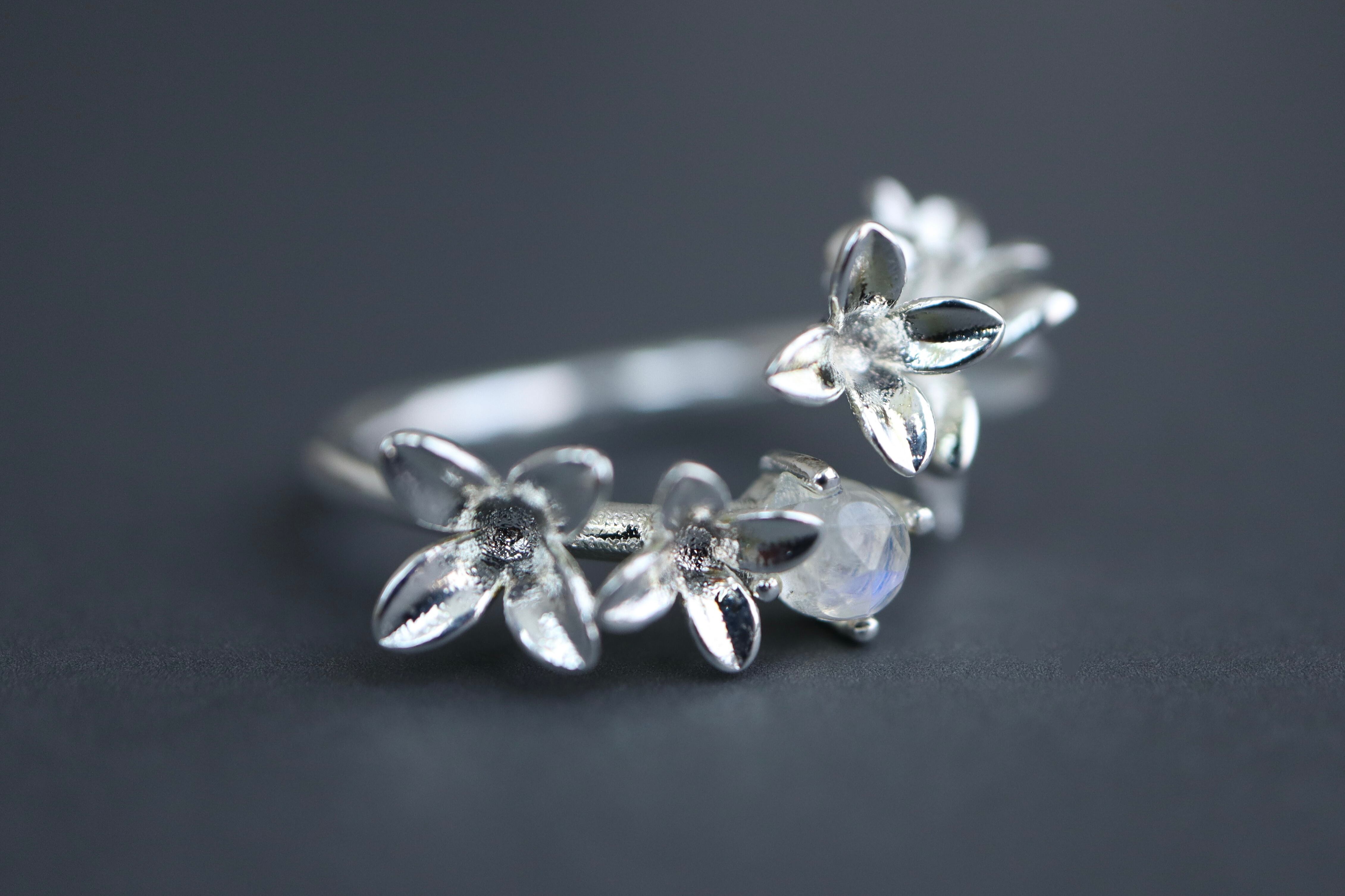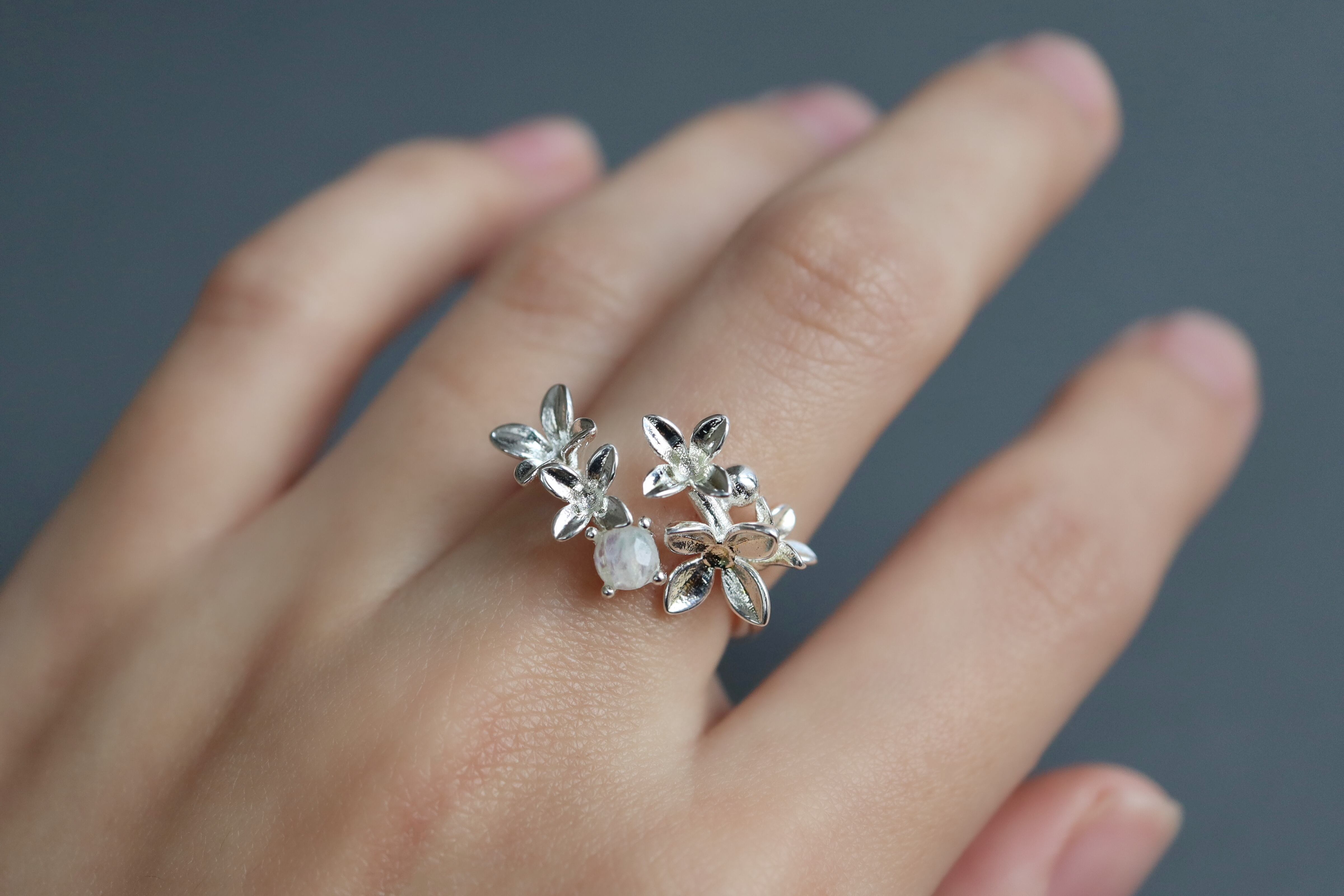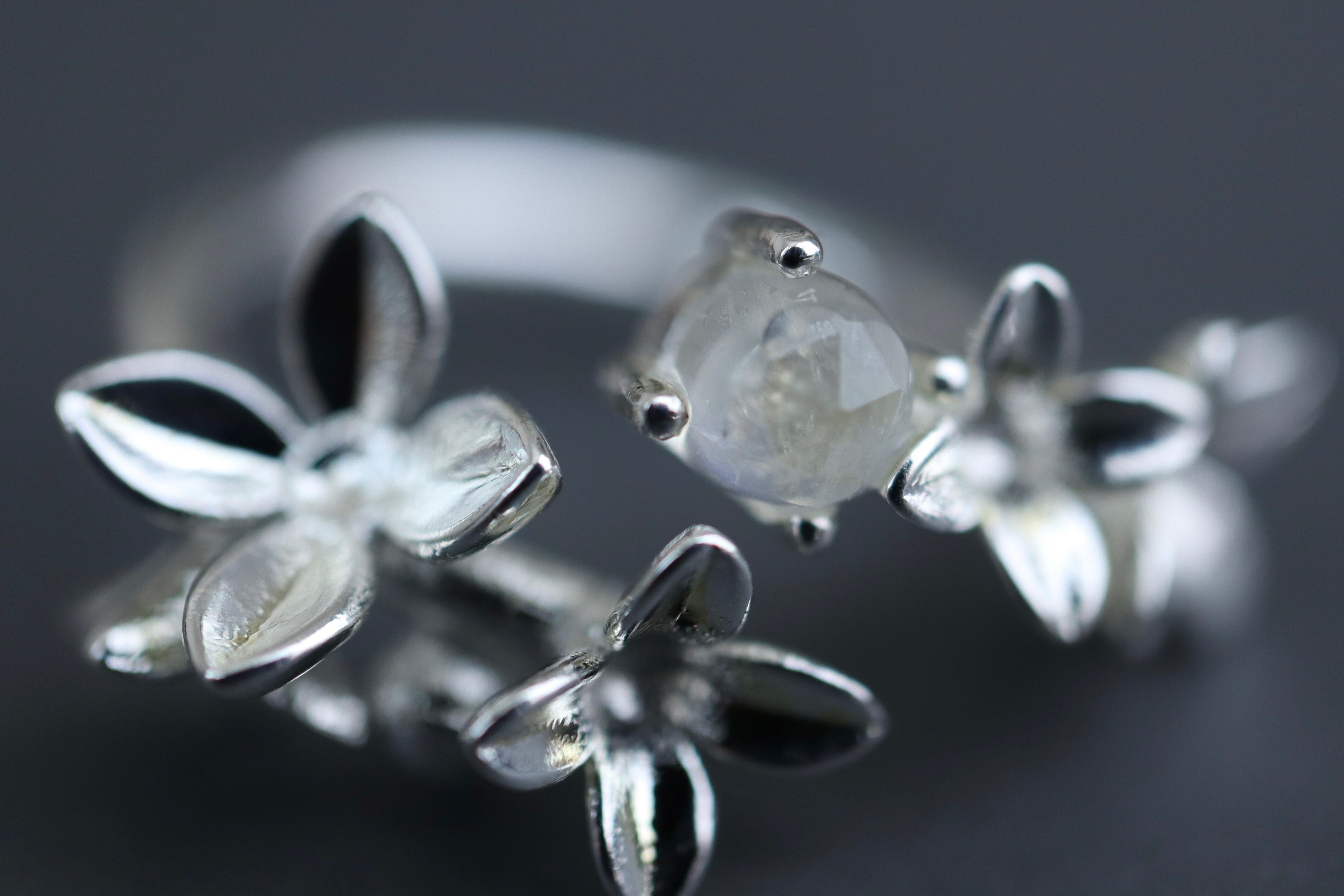 ムーンストーンと紫陽花のリング*誕生石*あじさい*天然石*梅雨*silver925【hydrangea】