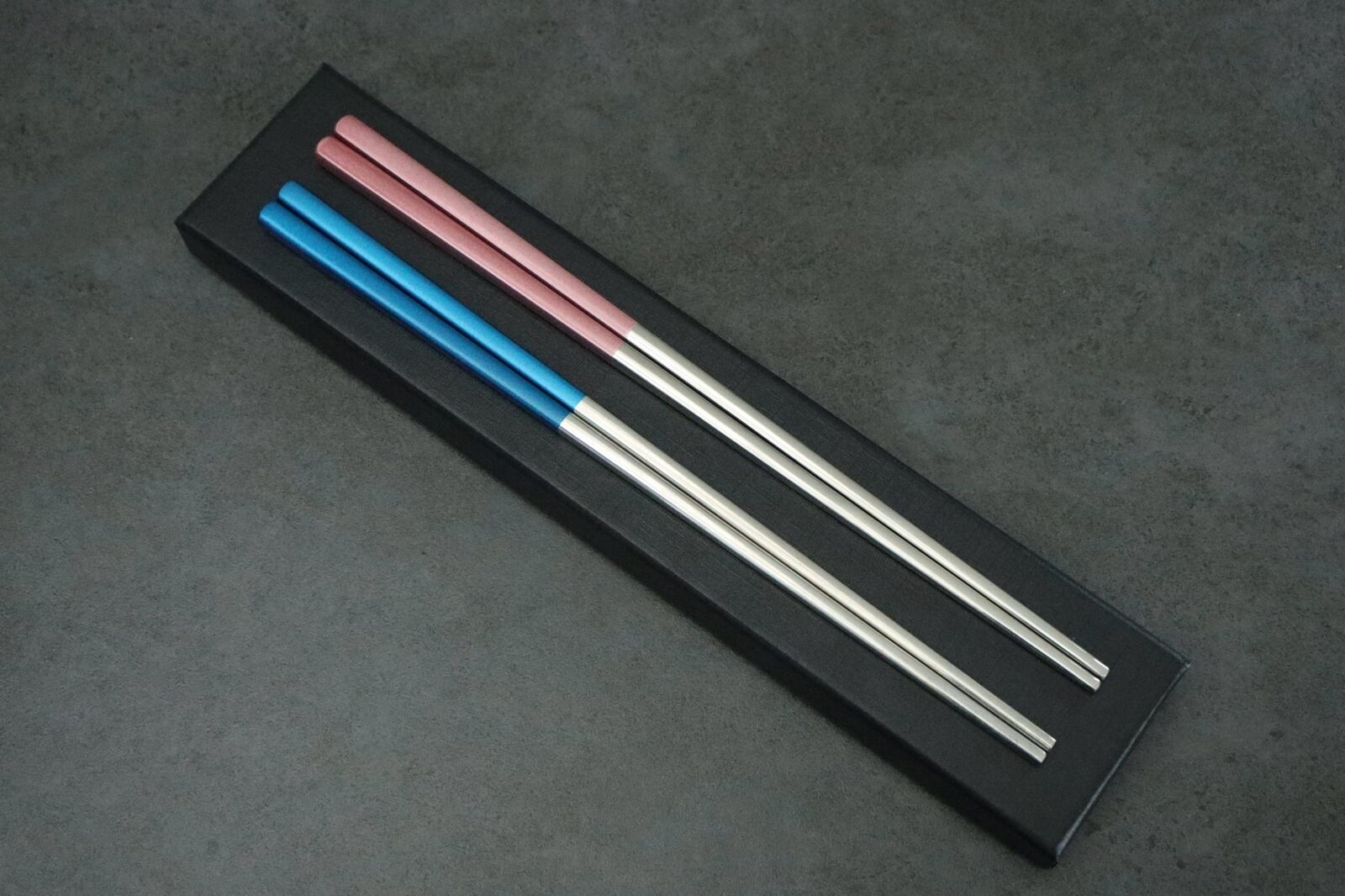 ステンレスのペアお箸(ピンク&ブルー各1膳)