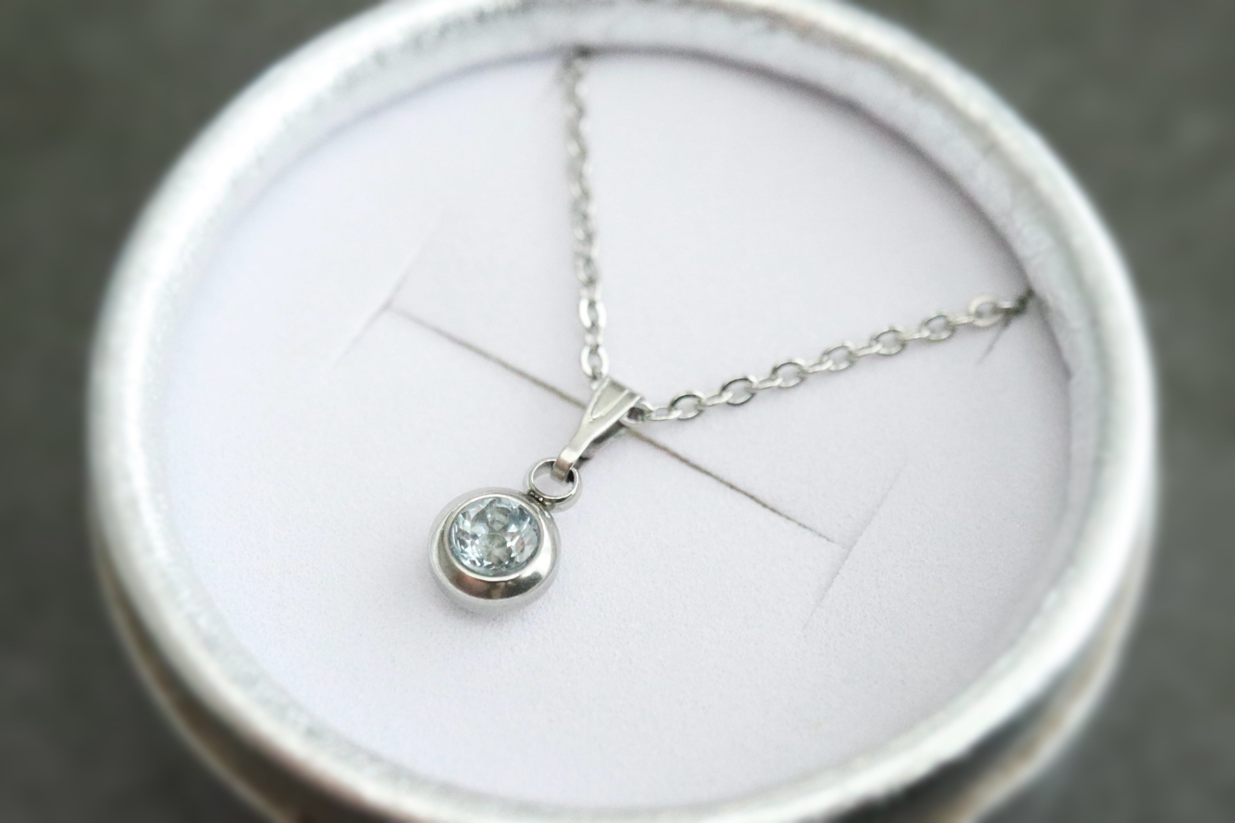 アクアマリンのネックレス*3月誕生石*天然石*サージカルステンレス【round】