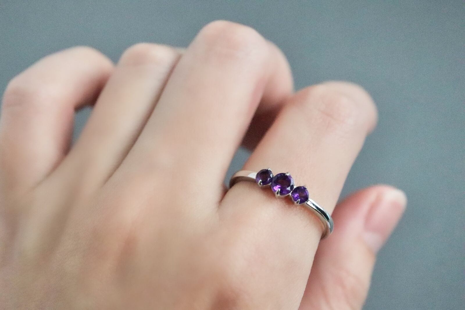 アメジストのペンダント&リング*天然石*フリーサイズ *誕生石*クリスマスコフレ