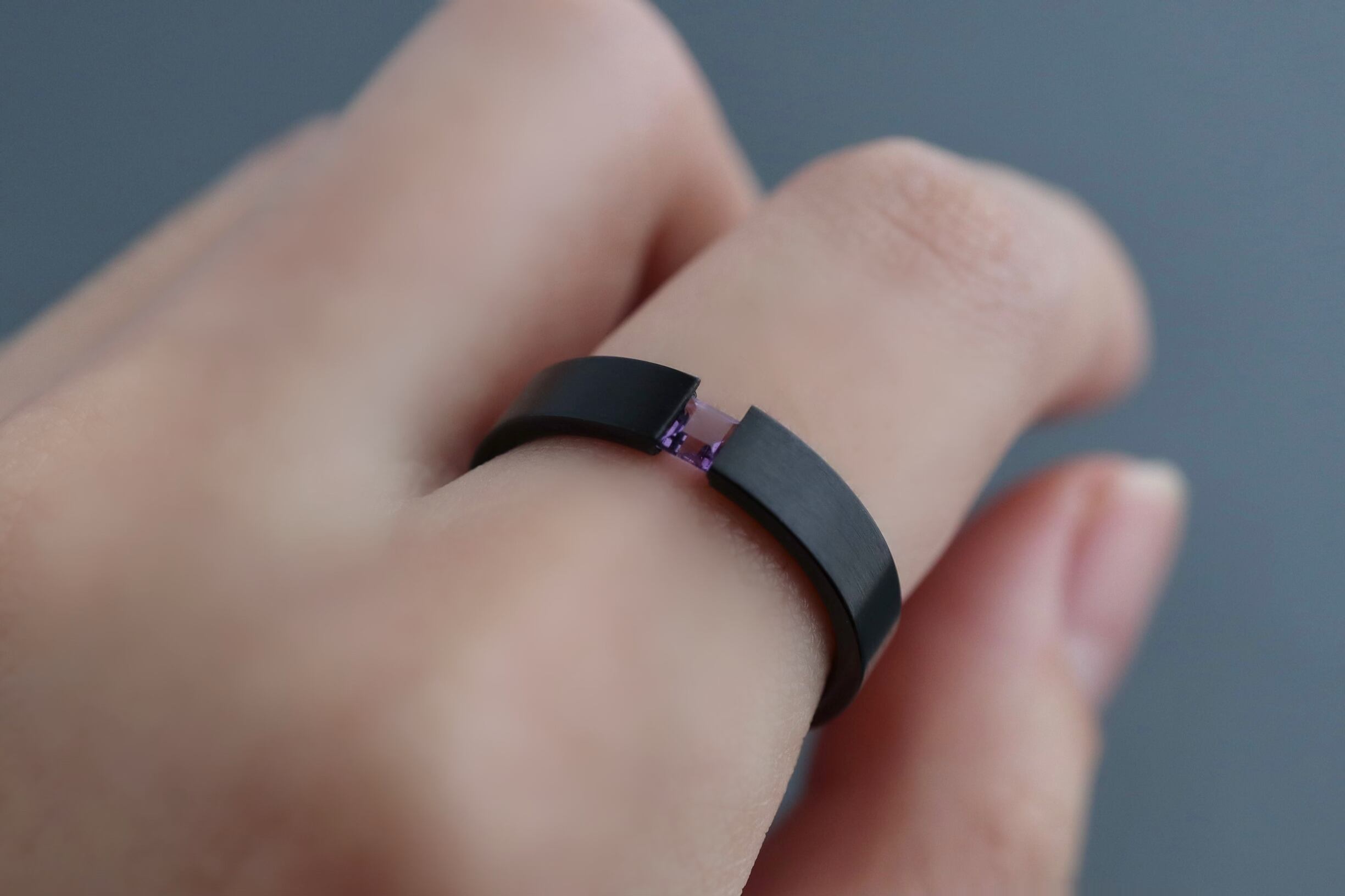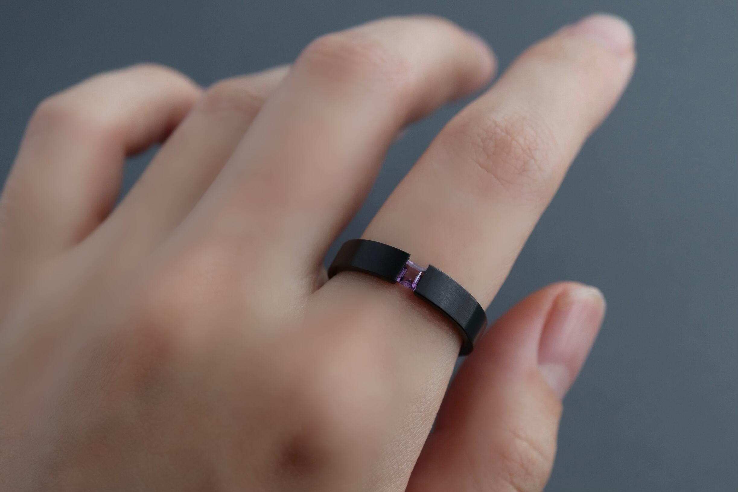 刻印♦︎アメジストのブラックリング♦︎天然石♦誕生石♦サージカルステンレス【black+square】