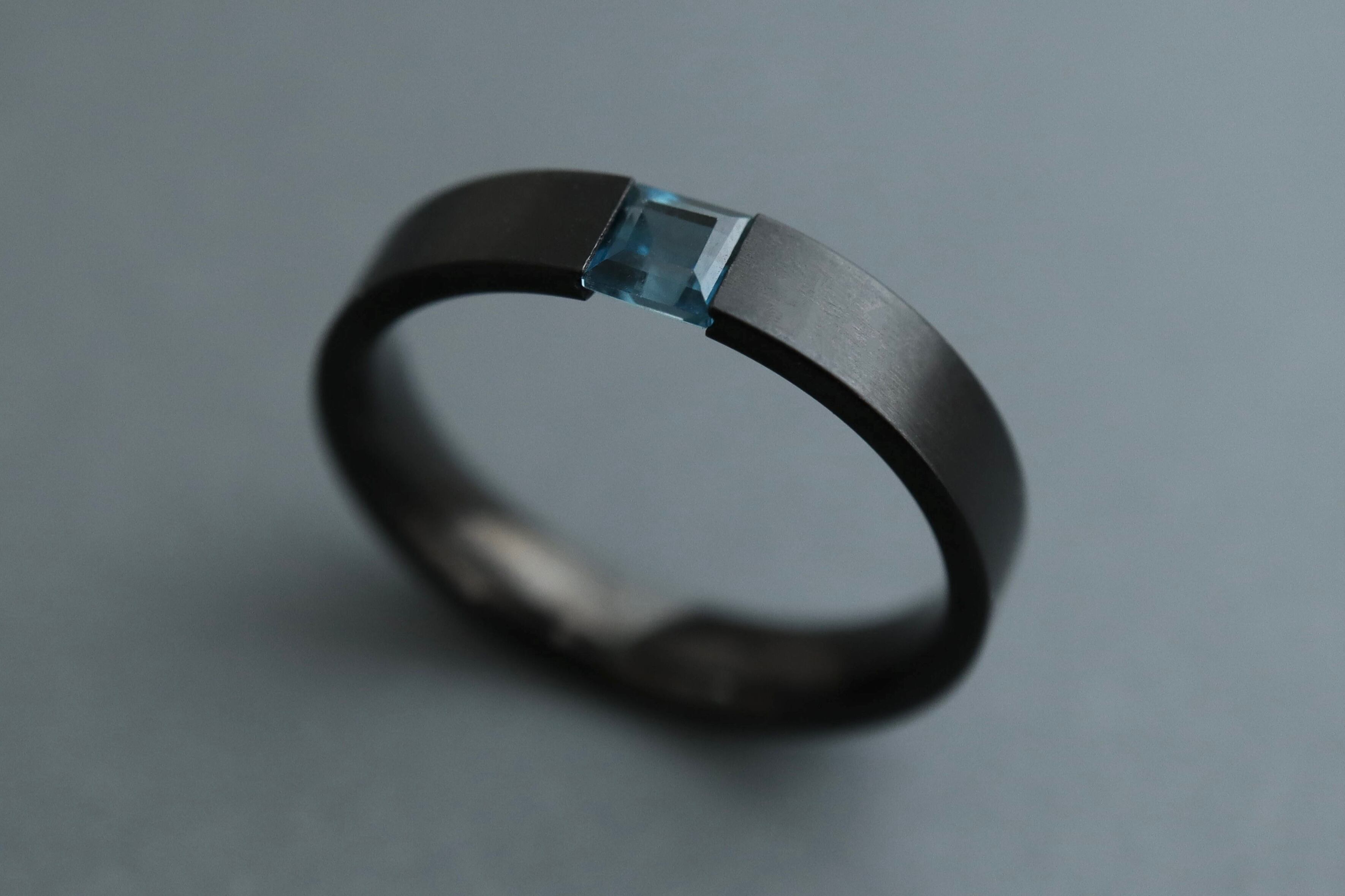 刻印♦︎ロンドンブルートパーズのブラックリング♦︎天然石♦誕生石♦サージカルステンレス【black+square】