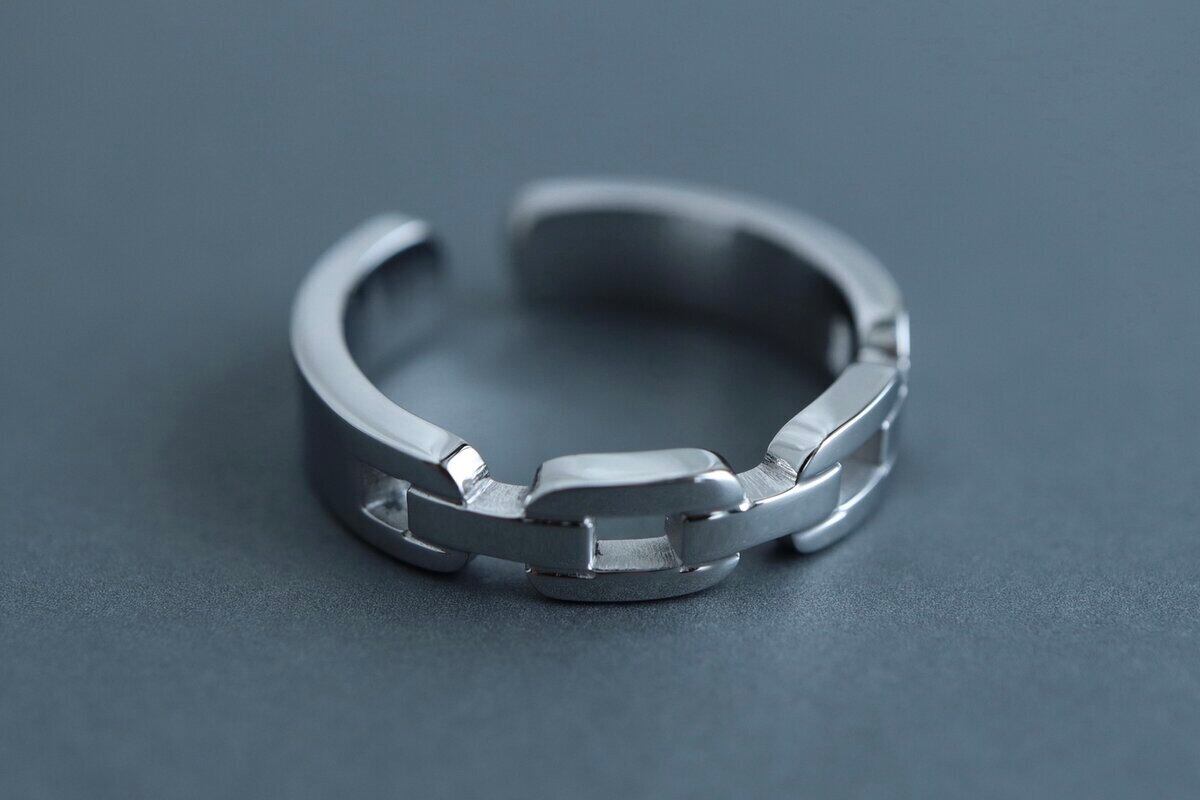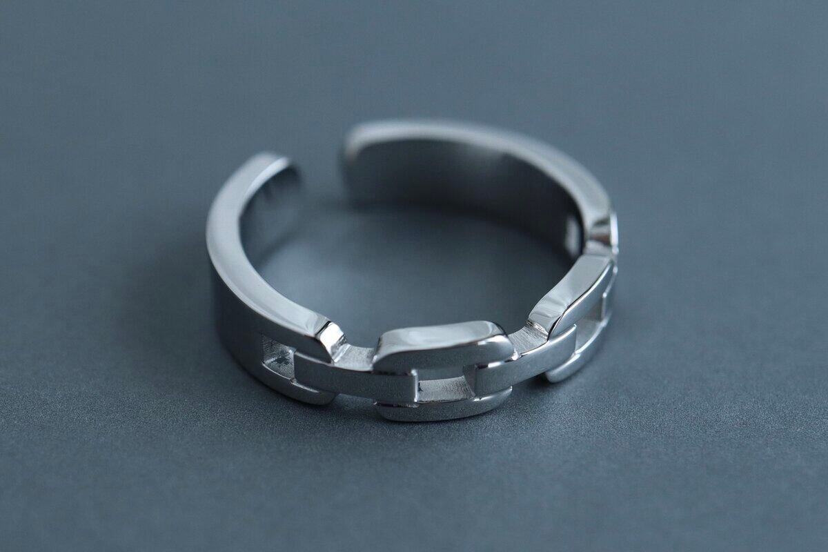 鎖が連なったデザインのシンプルなリングです。名前の通り丈夫な造りです。